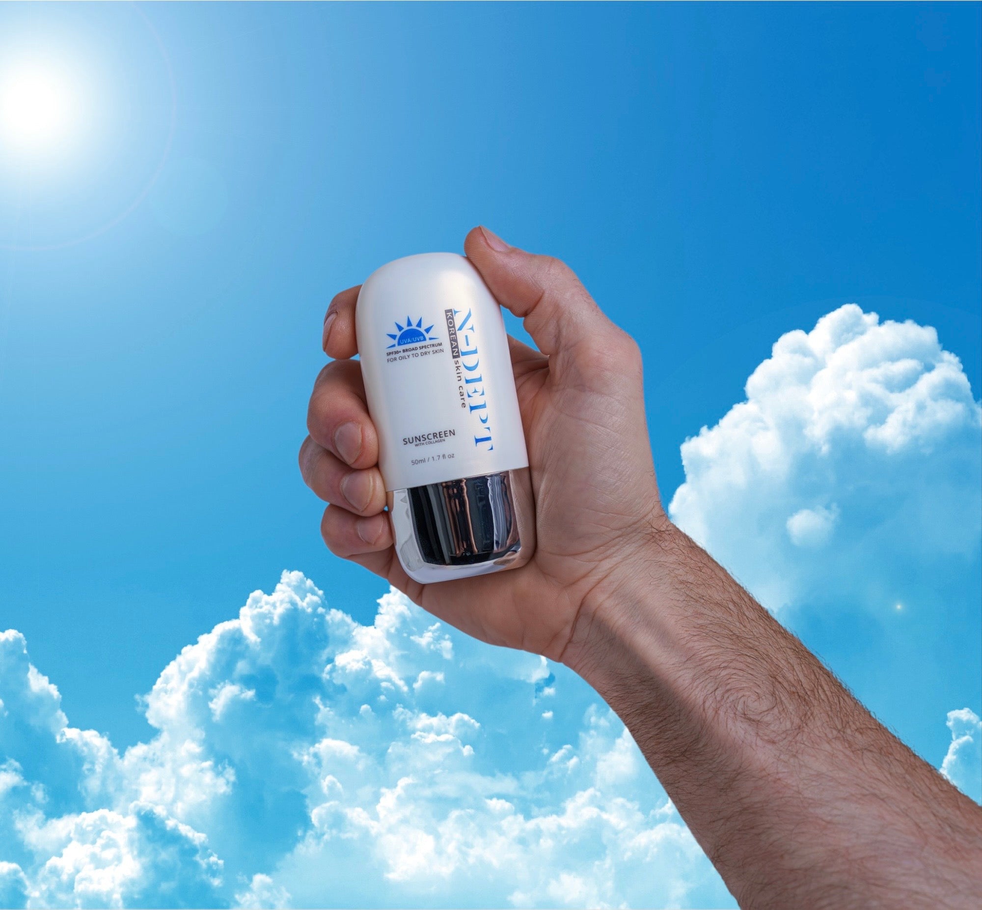 Embrace the luxury of N-DEPT Sunscreen, a beautifully curated formula that offers SPF 30+ broad-spectrum protection.